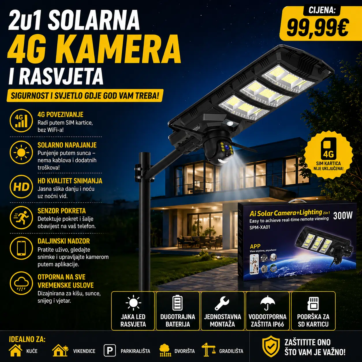 🌞📷 SOLARNA 4G KAMERA + RASVJETA – PAMETNA ZAŠTITA VAŠEG DOMA! 💡🔒